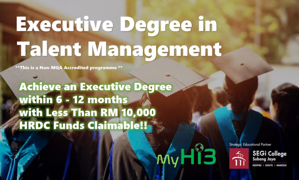 Executive Degree in Talent Management presented by MyHi3 Malaysia, awarded by SEGI College Subang Jaya provides you the opportunity to Improve Your Academic & Enhance Your Career..!!